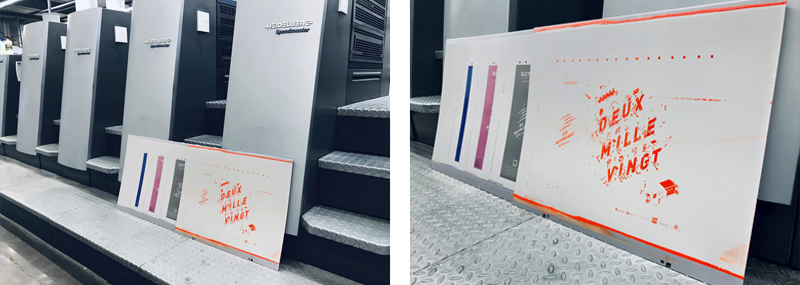 Pour l’impression de nos outils de communication 2020, nous avons opté pour le Pantone 804 C + impression CMJN.